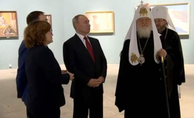 Выставку-форум "Православная Русь - ко Дню народного единства. Сокровища музеев России" посетил Владимир Путин. Его сопровождал патриарх Московский и всея Руси Кирилл.