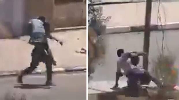 В Сети появилось видео, на котором запечатлено, как смельчак из иракской армии уносит из-под обстрела мирного жителя.