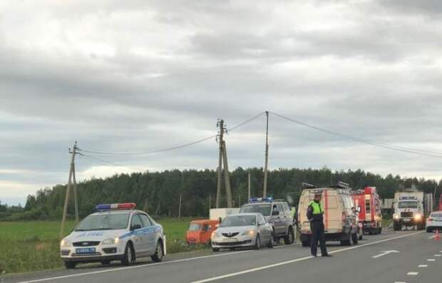 Инцидент случился на 186-м километре федеральной автодороги "Кола". Грузовик КамАЗ совершил наезд на три автомобиля. В результате, по предварительным данным, один человек погиб, не менее четырех пострадали.