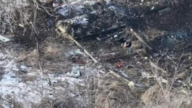 На видео можно заметить, как российский беспилотник подлетает к позициям ВСУ, после чего происходит мощный взрыв.