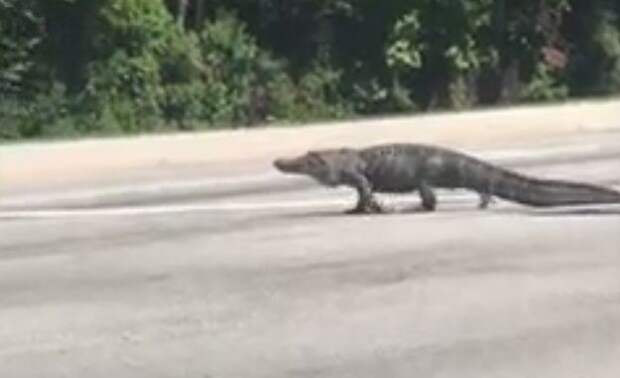 Газета Daily Mail опубликовала видео с аллигатором, прогуливающимся по автотрассе.