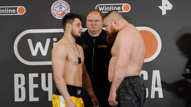 Скандально известный боец Вячеслав (Рыжий Тарзан) Дацик показал на весах 124,8 килограмма. Его соперник, Зелимхан (Пулеметчик) Дукаев, оказался на четверть легче – 91,5 килограмма.