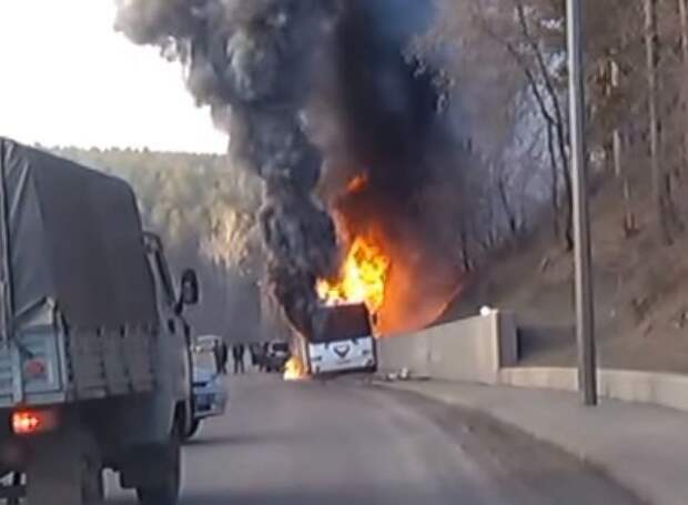 Отмечается, что все происходило настолько стремительно, что, когда на место прибыли сотрудники ГИБДД, автобус уже сгорел дотла.