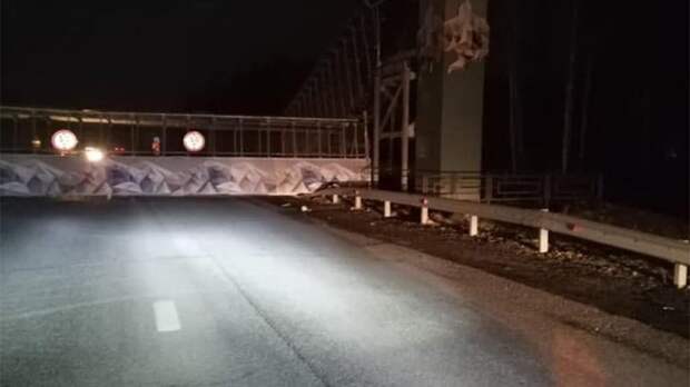 На фото видно, что мост полностью перекрыл проезжую часть. В результате автомобилям приходится разворачиваться на дороге.