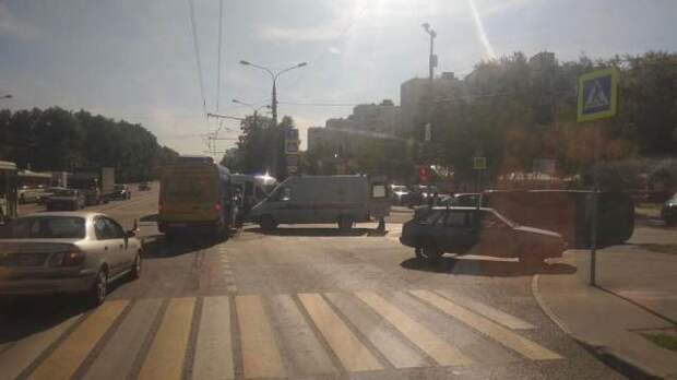 В пресс-службе ГИБДД по Москве сообщили, что столкнулись два легковых автомобиля и маршрутка. По предварительным данным, пострадало два человека.