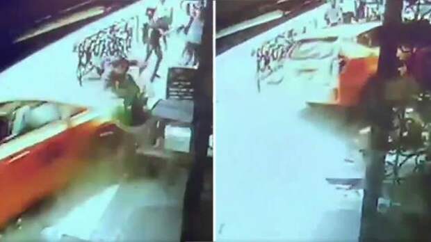 Автомобиль такси вылетел на тротуар в Нью-Йорке и протаранил прохожих. Инцидент произошел у одного из кафе на Манхэттене.