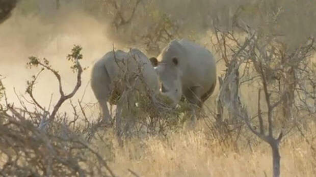 В южноафриканском национальном парке Крюгера два носорога устроили драку на глазах у ошеломленных туристов. В Сети побоище назвали "битвой титанов".