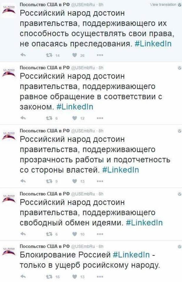 Напомним, Мосгорсуд признал законной блокировку LinkedIn на территории России еще 10 ноября. Однако спустя неделю российские телеком-операторы начали блокировать соцсеть. В связи с этим США выразили обеспокоенность.