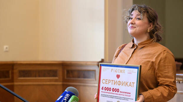 Девушка приехала на выставку "Россия" вместе с мужем Владимиром и друзьями, но не ожидала, что станет обладательницей сертификата.