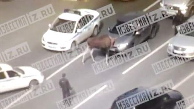 В распоряжении РЕН ТВ появилось видео с камер наблюдения, которые зафиксировали, как правоохранители пытались поймать разгуливающего по проезжей части лося.