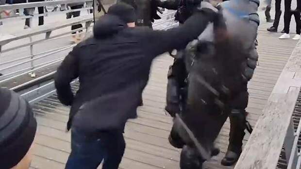 Бывший чемпион Франции по боксу в полутяжелом весе Кристоф Деттинже напал на сотрудника полиции во время протестной акции "желтых жилетов" во Франции. 37-летний спортсмен набросился на правоохранителя, который попытался закрыться от него щитом.