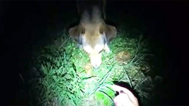 Глубина ямы почти 4 метра, поэтому волонтерам пришлось раздобыть лестницу. Собака была настолько голодной, что тут же накинулась на еду.