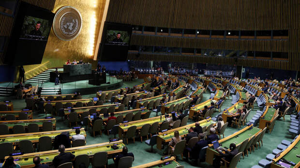 На кадрах видно, что целые ряды кресел зала в Нью-Йорке, где проходит ГА ООН, стояли пустыми.
