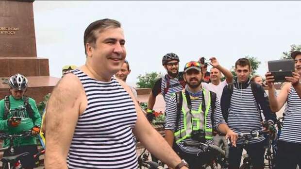 Сегодня губернатор Одесской области Михаил Саакашвили приняли участие в велопробеге в тельняшках, приуроченном к празднованию дня ВМС ВСУ.