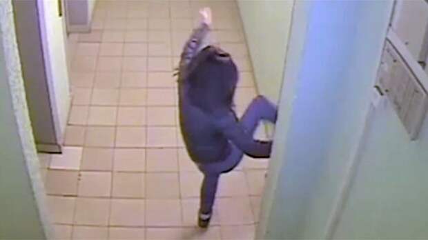 На видео с камеры подъезда видно, как молодая девушка выходит из лифта, спотыкается о ногу одной из заходящих в лифт пассажирок, а затем разворачивается и в отместку делает мощный пинок, вталкивая женщину в лифт.
