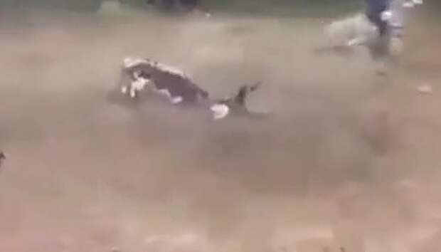 Бык на глазах у зрителей сбил на землю и начал топтать одного из участников представления. После он зацепил его рогами и подбросил в воздух, что привело к падению лошади с другим наездником.