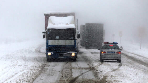 Фуры застряли в 30-километровой пробке из-за снегопада в Забайкалье