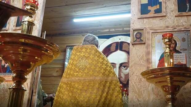 Первую службу в храме провел протоиерей Михаил Киселев. Он передал икону Георгия Победоносца бойцам, которые возводили сооружение.