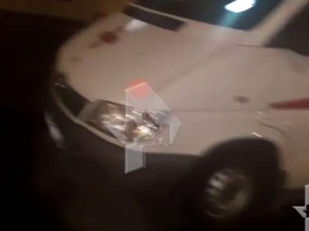 На кадрах можно увидеть карету медиков с повреждениями на стекле.