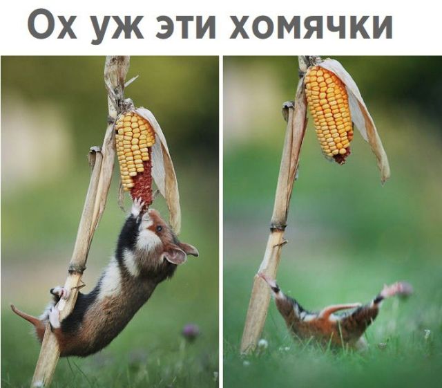Фотография появилась в социальной сети "ВКонтакте". Судя по этому коллажу, малыш не смог удержаться на кукурузе — видимо, оторвался кусочек, за который он держался. "Пострадавшего" успели сфотографировать прямо в полете.
