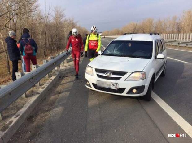 В Самаре невнимательный водитель протаранил колонну велосипедистов, которая двигалась по обочине трассы М5.