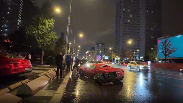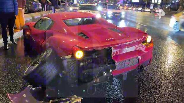 Автомобиль Ferrari красного цвета разбился в центре Москвы. Кадры с последствиями аварии на Новом Арбате появились в распоряжении РЕН ТВ.