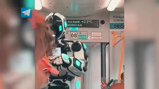 На видеозаписи запечатлено, как робот-контролер проверяет у пассажиров проездные билеты, а также объясняет правила поведения в общественном транспорте.