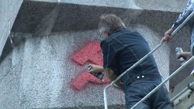 Сообщается, что в красный цвет они выкрасили расположенные на монументе серп и молот.