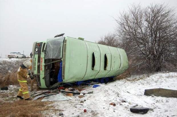 Служебный автобус, в котором находились шахтеры, перевернулся в Ростовской области.