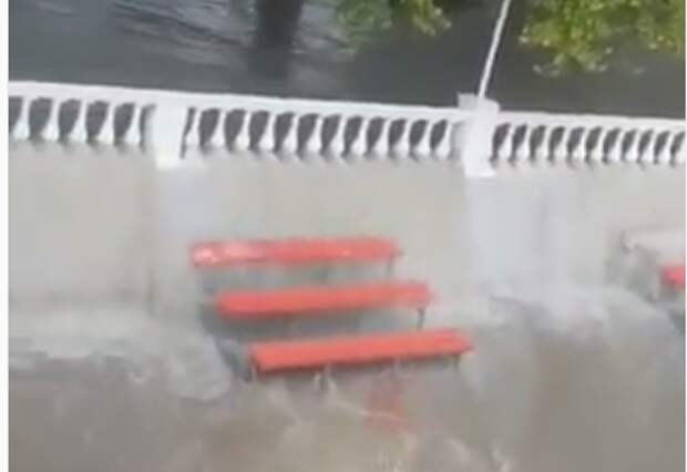 В пабликах соцсетей публикуют видео, на котором видно, как потоки воды смывают все на своем пути.