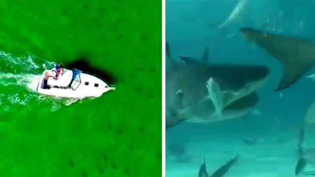 У американского побережья Дестина произошло нашествие акул. Ролик, запечатлевший необычное явление, набрал десятки тысяч просмотров и комментариев