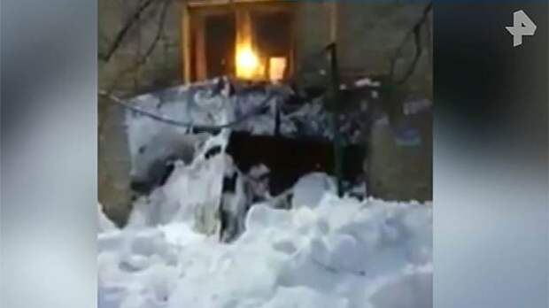 Из-за метели обрушился козырек их подъезда. По словам жильцов, коммунальщики не удосужились убрать снег, лишь сбив сосульки.