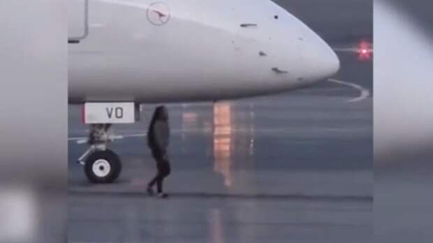 Размахивая руками, женщина пыталась привлечь внимание экипажа и даже подошла прямо к шасси.