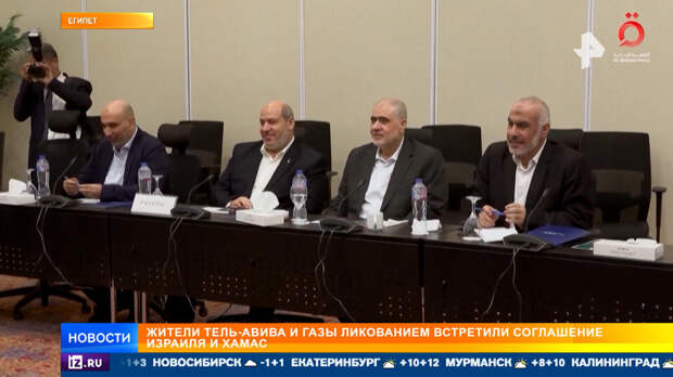 В ответ Израиль должен отпустить из тюрем две тысячи палестинцев. Улицы в Хан Юнисе, на юге Газы, ликуют.Ликования по всему Ближнему Востоку. Палестинские флаги развеваются на многотысячном митинге в столице Пакистана Исламабаде. Над египетским Шарм эль-Шейхом такой же флаг тянет за собой дельтаплан. Именно здесь, на известном многим российским туристам курорте, Израиль и ХАМАС, кажется, впервые за долгие годы смогли найти общий язык. Внешне, под камеры, вчерашние враги улыбаются, жмут друг другу руки.