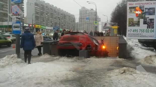 Автомобиль KIA, влетевший после ДТП в подземный переход, задел девушку, поднимавшуюся по лестнице. Как сообщают очевидцы, от тяжелых травм девушку спасли бордюры. Однако легкие повреждения она все же получила. Помимо пешехода, пострадали трое пассажиров обоих авто, ставших участниками ДТП.