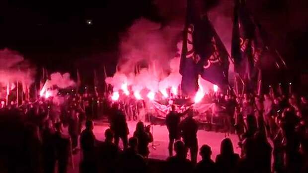 Неонацисты "Азова" сожгли российский флаг. Это произошло на факельном шествии, которое состоялось в Черкассах 23 апреля.