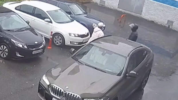 "Услышал женские крики, обратил внимание, что ее какой-то парень в капюшоне в черной куртке выдирает из машины, роняет на землю и бьет. Открываю балкон, кричу: "Нехороший ты человек! Ты что творишь?" Он бросил ее, сел на велосипед и уехал", – рассказал местный житель.