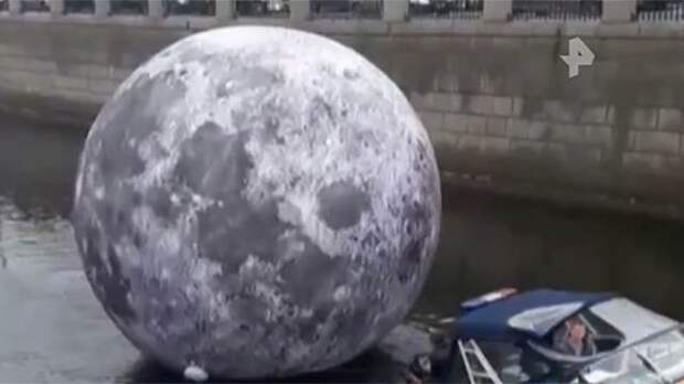 Большое космическое шоу развернулось возле Можайского моста. Там в воде плавает Луна. Правда, спутник земли не упал с неба, его отбуксировал катер.