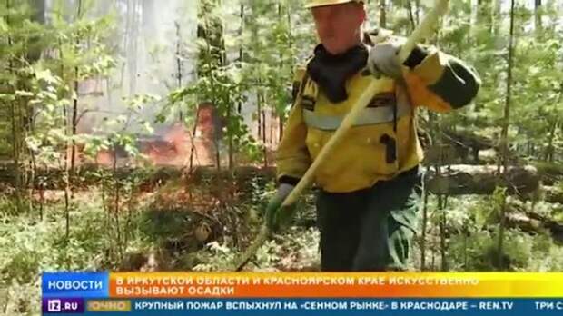 Сложная обстановка в Иркутской области и Красноярском крае, где сейчас стоит сухая и жаркая погода, из-за чего пожары с сотен гектаров разрослись до нескольких тысяч. Чтобы их остановить, специалисты Авиалесоохраны вызывают искусственные дожди, отстреливая специальными патронами облака.