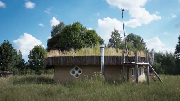 Скриншот видео Есть мнение, что за такими экодомами будущее. Ведь у них масса достоинств. Их можно строить на крутых склонах и холмах. Землянкам не нужны бетонные плиты, кирпичи и подорожавшие в два раза доски. Чтобы сделать дом, надо просто подобрать то, что валяется под ногами. Житель Беларуси Евгений Раевский так и поступил.