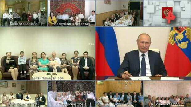В ходе встречи президента РФ в режиме видеоконференции с семьями, удостоенными орденов "Родительская слава", несколько детей не дождались онлайн-беседы с российским лидером и уснули.