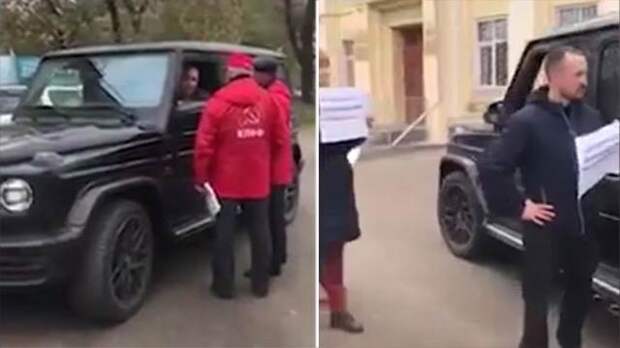 Мэр Иркутского района Леонид Фролов уехал на Gelandewagen с пикета, на котором жители города выступали против повышения родительской платы в детских садах.