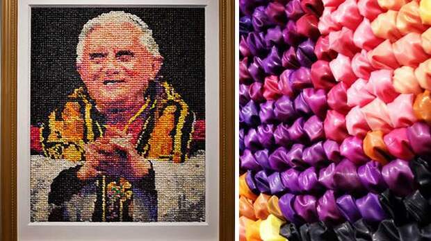 В художественном музее Милуоки (США) будет выставлен портрет предыдущего Папы Римского Бенедикта XVI, который был изготовлен из 17 тысяч презервативов.