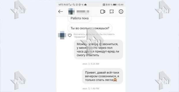 Уже утром 3 июля она написала приятелю, чтобы он не звонил ей сейчас: