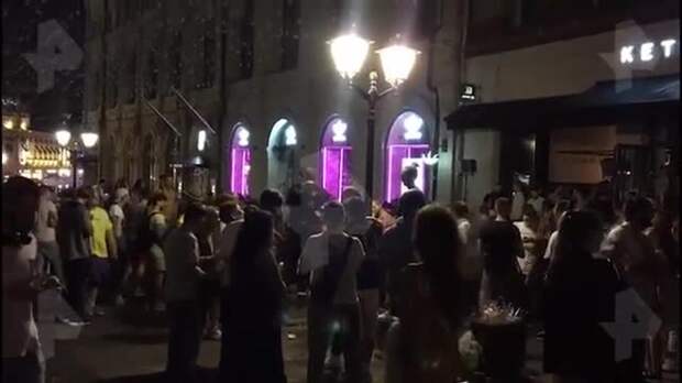 Как стало известно РЕН ТВ, москвичи, пришедшие в центр города в ночь с четверга на пятницу, танцуют и веселятся на улице. При этом на кадрах видео видно, что о соблюдении социальной дистанции речи не идет.