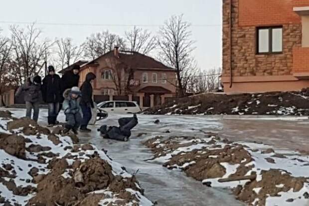 Ранее такая проблема уже была в сентябре. Тогда нечистоты откачали, но сейчас они образовались снова. Местный житель пытается помешать проживающим в селе детям кататься с образовавшейся горки.