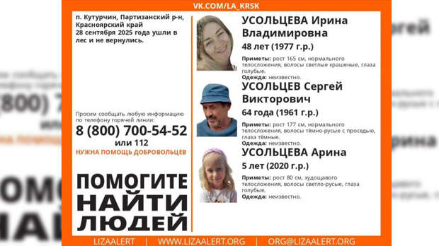 "Мама, папа и пятилетний ребенок отправились в небольшой поход. На сегодняшний день их местоположение неизвестно", – рассказал региональный представитель отряда "ЛизаАлерт" Красноярского края Владислав Величко.