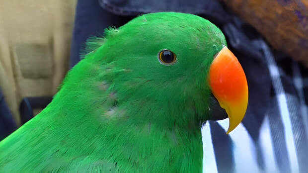 Первый задержанный, Александрийский попугай, уже сидит в клетке. Вид достаточно распространенный для домашнего содержания. Три месяца он сам добывал себе еду, но, судя по внешнему виду, делал это он вполне успешно.
