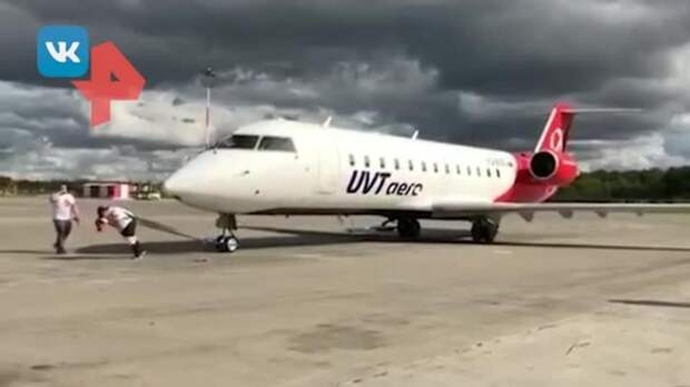 На кадрах, размещенных в Сети, видно, что лидер Федерации силового экстрима России и спортсмен подмосковного "РосМолСпорта" не только сдвинул с места воздушное судно за 1,5 минуты, но и по пути надувал и разрывал медицинские грелки. Он разорвал 3 грелки.