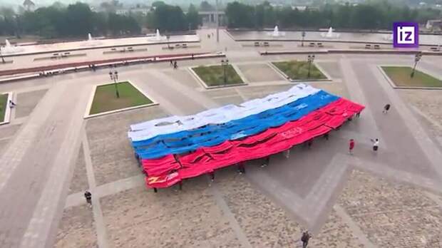 Всего флаг состоял из 90 частей, пять из которых — из ДНР, ЛНР, Запорожской, Херсонской и Харьковской областей.На главной аллее парка развернули флаг длиной 165 метров и шириной девять метров.